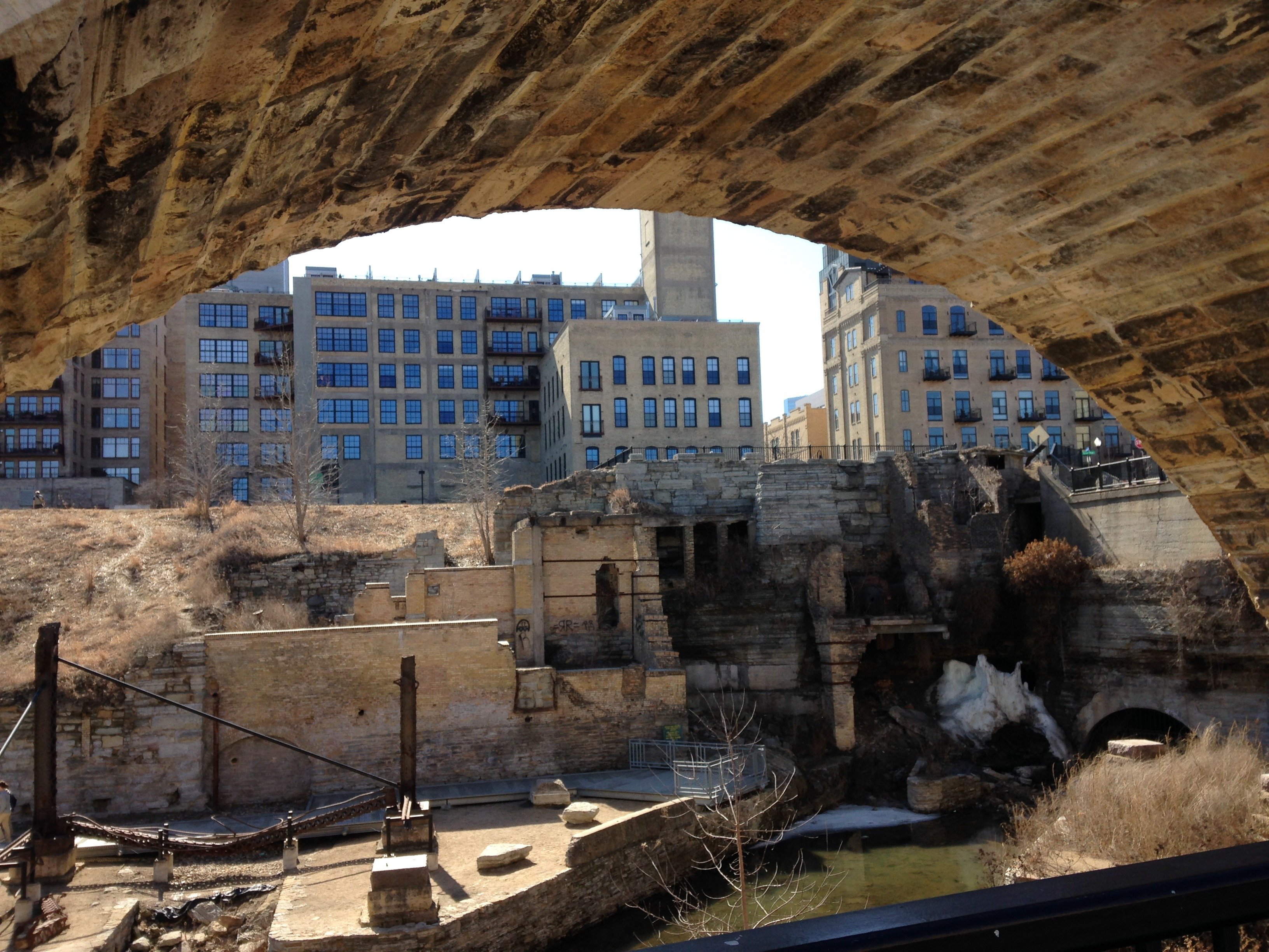 Walking down the Mills District along the Mississippi River