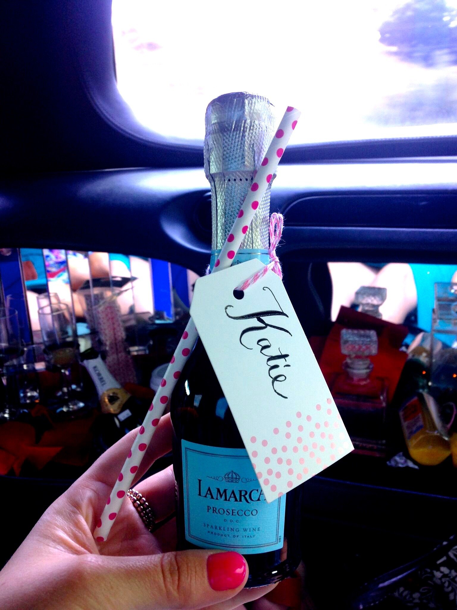 You really don’t need to bring much! I gave all of the girls mini champagne bottles that my roommate calligraphied as a little party favor. We had the bride wear a tiara and sash and then I brought about 3 bottles of champagne and a thing of OJ. The limo also provided a bottle of champagne, flutes, OJ and tons of waters. I didn’t bring snacks because we ate breakfast before we left and had lunch while we were there. Just bring your camera and be prepped for some fun!!